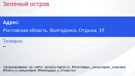 Зеленый остров по адресу Ростовская область, Волгодонск, Отдыха, 19 в дальнейшем Организация, размещена в следующих категориях: