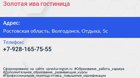 Золотая ива, гостиница по адресу Ростовская область, Волгодонск, Отдыха, 5с в дальнейшем Организация, размещена в следующих категориях: