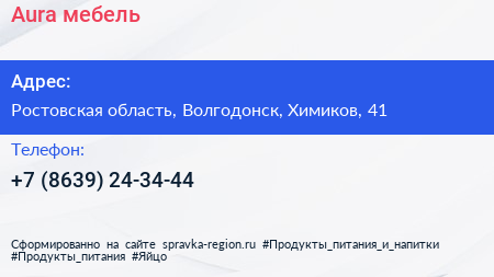 Aura мебель по адресу Ростовская область, Волгодонск, Химиков, 41 в дальнейшем Организация, размещена в следующих категориях: