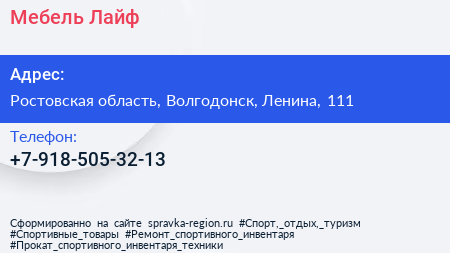 Мебель Лайф по адресу Ростовская область, Волгодонск, Ленина, 111 в дальнейшем Организация, размещена в следующих категориях:
