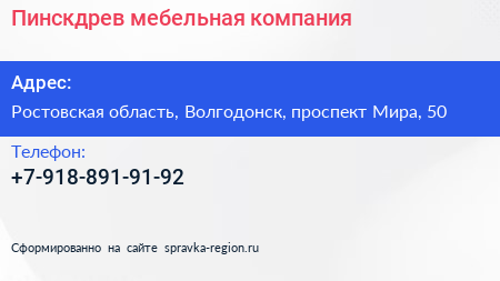 Пинскдрев, мебельная компания по адресу Ростовская область, Волгодонск, проспект Мира, 50 в дальнейшем Организация, размещена в следующих категориях: