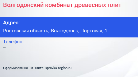 Волгодонский комбинат древесных плит по адресу Ростовская область, Волгодонск, Портовая, 1 в дальнейшем Организация, размещена в следующих категориях: