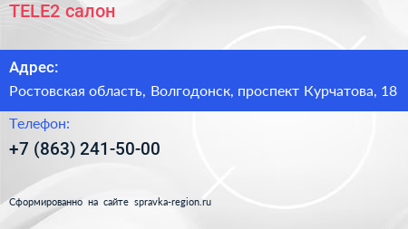 TELE2, салон по адресу Ростовская область, Волгодонск, проспект Курчатова, 18 в дальнейшем Организация, размещена в следующих категориях: