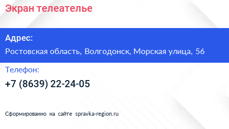 Экран, телеателье по адресу Ростовская область, Волгодонск, Морская улица, 56 в дальнейшем Организация, размещена в следующих категориях: