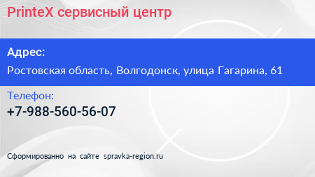 PrinteX, сервисный центр по адресу Ростовская область, Волгодонск, улица Гагарина, 61 в дальнейшем Организация, размещена в следующих категориях: