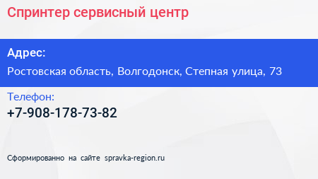 Спринтер, сервисный центр по адресу Ростовская область, Волгодонск, Степная улица, 73 в дальнейшем Организация, размещена в следующих категориях: