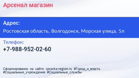 Арсенал, магазин по адресу Ростовская область, Волгодонск, Морская улица, 5л в дальнейшем Организация, размещена в следующих категориях: