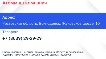 Атоммаш, компания по адресу Ростовская область, Волгодонск, Жуковское шоссе, 10 в дальнейшем Организация, размещена в следующих категориях: