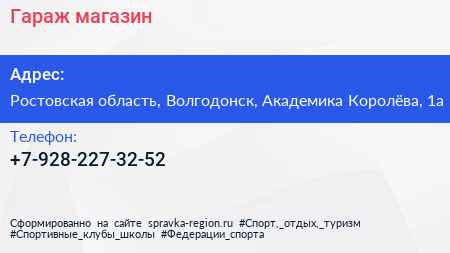 Гараж, магазин по адресу Ростовская область, Волгодонск, Академика Королёва, 1а в дальнейшем Организация, размещена в следующих категориях: