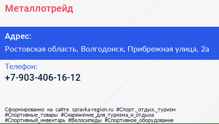 Металлотрейд по адресу Ростовская область, Волгодонск, Прибрежная улица, 2а в дальнейшем Организация, размещена в следующих категориях: