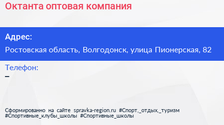 Октанта, оптовая компания по адресу Ростовская область, Волгодонск, улица Пионерская, 82 в дальнейшем Организация, размещена в следующих категориях: