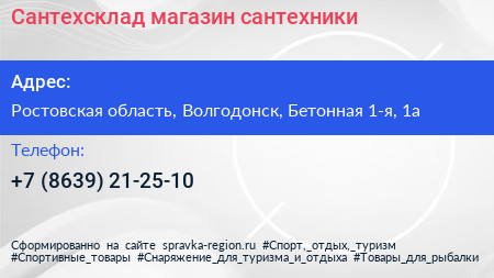 Сантехсклад, магазин сантехники по адресу Ростовская область, Волгодонск, Бетонная 1-я, 1а в дальнейшем Организация, размещена в следующих категориях: