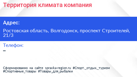 Территория климата, компания по адресу Ростовская область, Волгодонск, проспект Строителей, 21/3 в дальнейшем Организация, размещена в следующих категориях: