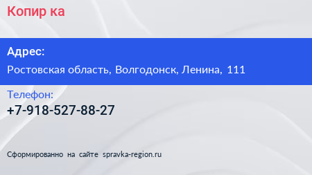 Копир`ка по адресу Ростовская область, Волгодонск, Ленина, 111 в дальнейшем Организация, размещена в следующих категориях:
