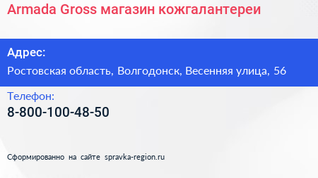 Armada Gross, магазин кожгалантереи по адресу Ростовская область, Волгодонск, Весенняя улица, 56 в дальнейшем Организация, размещена в следующих категориях:
