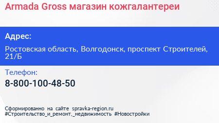 Armada Gross, магазин кожгалантереи по адресу Ростовская область, Волгодонск, проспект Строителей, 21/Б в дальнейшем Организация, размещена в следующих категориях: