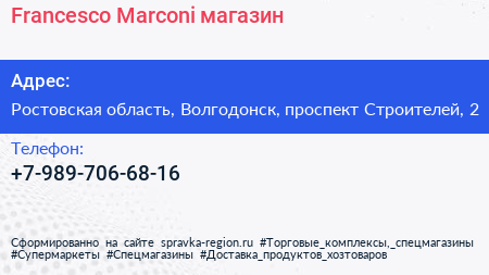 Francesco Marconi, магазин по адресу Ростовская область, Волгодонск, проспект Строителей, 2 в дальнейшем Организация, размещена в следующих категориях:
