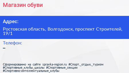 Магазин обуви по адресу Ростовская область, Волгодонск, проспект Строителей, 19/1 в дальнейшем Организация, размещена в следующих категориях: