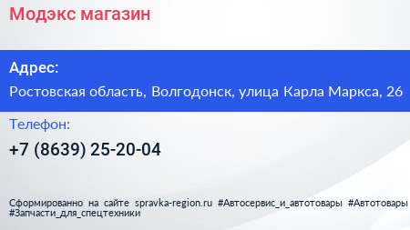 Модэкс, магазин по адресу Ростовская область, Волгодонск, улица Карла Маркса, 26 в дальнейшем Организация, размещена в следующих категориях:
