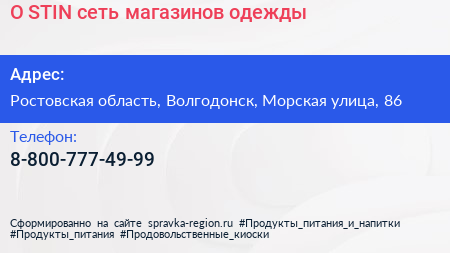 O`STIN, сеть магазинов одежды по адресу Ростовская область, Волгодонск, Морская улица, 86 в дальнейшем Организация, размещена в следующих категориях: