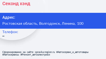 Секонд-хэнд по адресу Ростовская область, Волгодонск, Ленина, 100 в дальнейшем Организация, размещена в следующих категориях: