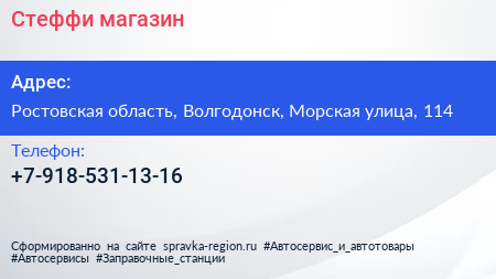 Стеффи, магазин по адресу Ростовская область, Волгодонск, Морская улица, 114 в дальнейшем Организация, размещена в следующих категориях: