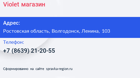 Violet, магазин по адресу Ростовская область, Волгодонск, Ленина, 103 в дальнейшем Организация, размещена в следующих категориях: