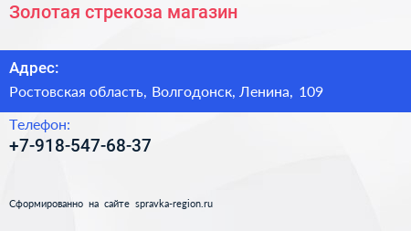 Золотая стрекоза, магазин по адресу Ростовская область, Волгодонск, Ленина, 109 в дальнейшем Организация, размещена в следующих категориях:
