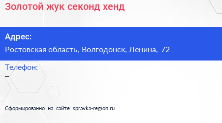 Золотой жук, секонд-хенд по адресу Ростовская область, Волгодонск, Ленина, 72 в дальнейшем Организация, размещена в следующих категориях: