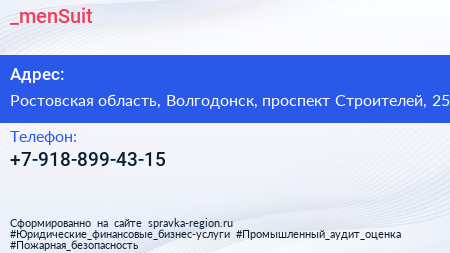 _menSuit по адресу Ростовская область, Волгодонск, проспект Строителей, 25 в дальнейшем Организация, размещена в следующих категориях: