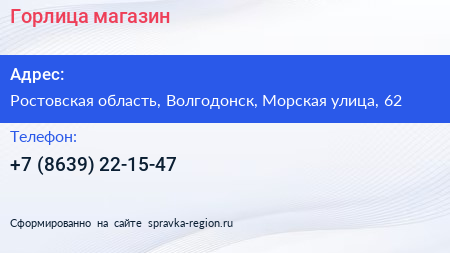 Горлица, магазин по адресу Ростовская область, Волгодонск, Морская улица, 62 в дальнейшем Организация, размещена в следующих категориях: