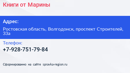 Книги от Марины по адресу Ростовская область, Волгодонск, проспект Строителей, 33а в дальнейшем Организация, размещена в следующих категориях: