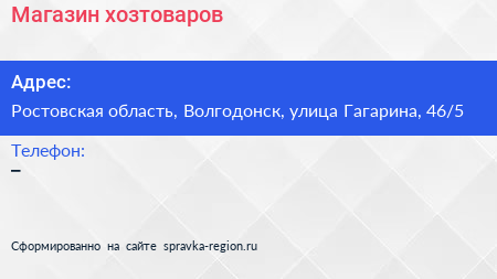 Магазин хозтоваров по адресу Ростовская область, Волгодонск, улица Гагарина, 46/5 в дальнейшем Организация, размещена в следующих категориях: