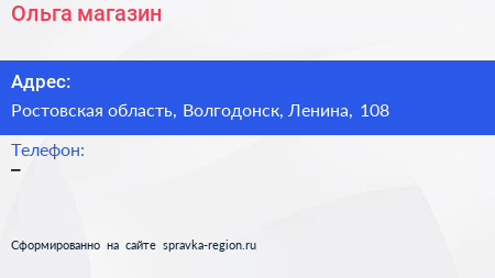 Ольга, магазин по адресу Ростовская область, Волгодонск, Ленина, 108 в дальнейшем Организация, размещена в следующих категориях: