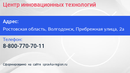 Центр инновационных технологий по адресу Ростовская область, Волгодонск, Прибрежная улица, 2а в дальнейшем Организация, размещена в следующих категориях: