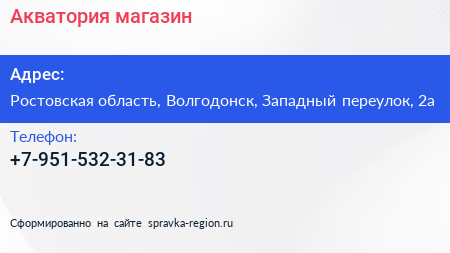 Акватория, магазин по адресу Ростовская область, Волгодонск, Западный переулок, 2а в дальнейшем Организация, размещена в следующих категориях:
