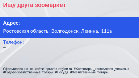 Ищу друга, зоомаркет по адресу Ростовская область, Волгодонск, Ленина, 111а в дальнейшем Организация, размещена в следующих категориях: