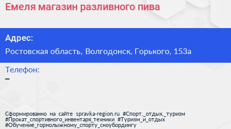 Емеля, магазин разливного пива по адресу Ростовская область, Волгодонск, Горького, 153а в дальнейшем Организация, размещена в следующих категориях: