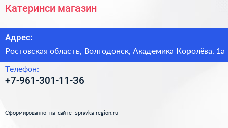 Катеринси, магазин по адресу Ростовская область, Волгодонск, Академика Королёва, 1а в дальнейшем Организация, размещена в следующих категориях: