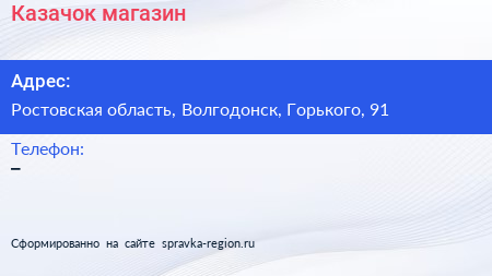 Казачок, магазин по адресу Ростовская область, Волгодонск, Горького, 91 в дальнейшем Организация, размещена в следующих категориях: