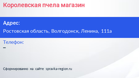Королевская пчела, магазин по адресу Ростовская область, Волгодонск, Ленина, 111а в дальнейшем Организация, размещена в следующих категориях: