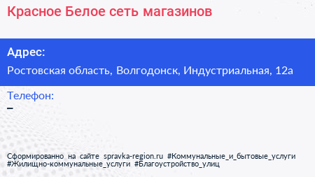 Красное & Белое, сеть магазинов по адресу Ростовская область, Волгодонск, Индустриальная, 12а в дальнейшем Организация, размещена в следующих категориях:
