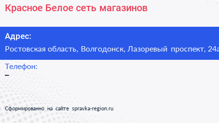 Красное & Белое, сеть магазинов по адресу Ростовская область, Волгодонск, Лазоревый проспект, 24а в дальнейшем Организация, размещена в следующих категориях: