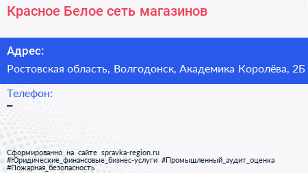 Красное & Белое, сеть магазинов по адресу Ростовская область, Волгодонск, Академика Королёва, 2Б в дальнейшем Организация, размещена в следующих категориях: