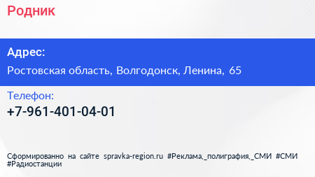 Родник по адресу Ростовская область, Волгодонск, Ленина, 65 в дальнейшем Организация, размещена в следующих категориях: