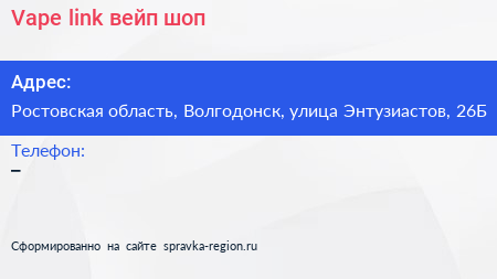 Vape link, вейп-шоп по адресу Ростовская область, Волгодонск, улица Энтузиастов, 26Б в дальнейшем Организация, размещена в следующих категориях: