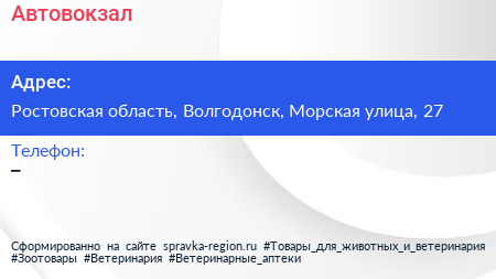 Автовокзал по адресу Ростовская область, Волгодонск, Морская улица, 27 в дальнейшем Организация, размещена в следующих категориях: