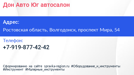 Дон-Авто-Юг, автосалон по адресу Ростовская область, Волгодонск, проспект Мира, 54 в дальнейшем Организация, размещена в следующих категориях: