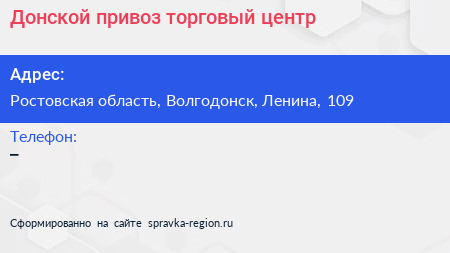 Донской привоз, торговый центр по адресу Ростовская область, Волгодонск, Ленина, 109 в дальнейшем Организация, размещена в следующих категориях: