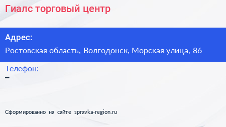 Гиалс, торговый центр по адресу Ростовская область, Волгодонск, Морская улица, 86 в дальнейшем Организация, размещена в следующих категориях: